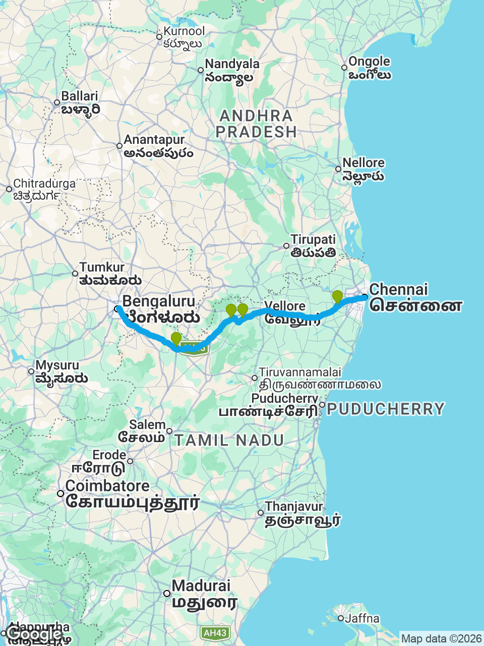 EV Road Trip: Bangalore to Chennai (One-Way)